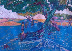 Recent paintings exploring memory, healing, and everyday life along Ghana’s coast.